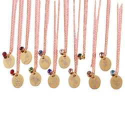 ZYNJ6653 Classic Link Chain Necklace with Natural Stone Disc Engraved Flowers and Crystal Birthstone Birthday Gift